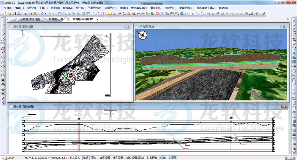LongRuan TGIS(x,y,t)二維空間+時間管理平臺(簡稱LongRuan TGIS平臺)是龍軟科技集近20年空間信息服務(wù)和研發(fā)經(jīng)驗,奉獻給用戶的一套具有完全自主知識產(chǎn)權(quán)的時空一體化GIS產(chǎn)品。平臺融合了云計算、邊緣計算、大數(shù)據(jù)、分布式協(xié)同、人工智能、跨平臺、中臺等技術(shù),具有強大的可視化、空間數(shù)據(jù)管理、地質(zhì)建模、空間分析、時態(tài)版本、歷史回溯、空間信息集成、發(fā)布與共享等能力,提供了完善的空間數(shù)據(jù)采集、存儲、管理、分析、處理、制圖與可視化功能,是智能化煤礦建設(shè)的重要技術(shù)中臺,可基于“一張圖”模式實現(xiàn)各類業(yè)務(wù)數(shù)據(jù)與基礎(chǔ)地理數(shù)據(jù)的疊加集成、匯交更新,為智能地質(zhì)保障系統(tǒng)提供地質(zhì)數(shù)據(jù)管理、高精度地質(zhì)建模、地質(zhì)云服務(wù)等支撐,支持“桌面、服務(wù)、Web、移動、云”等主流應(yīng)用場景,可應(yīng)用于智慧礦山、智慧應(yīng)急、智慧安監(jiān)等領(lǐng)域。