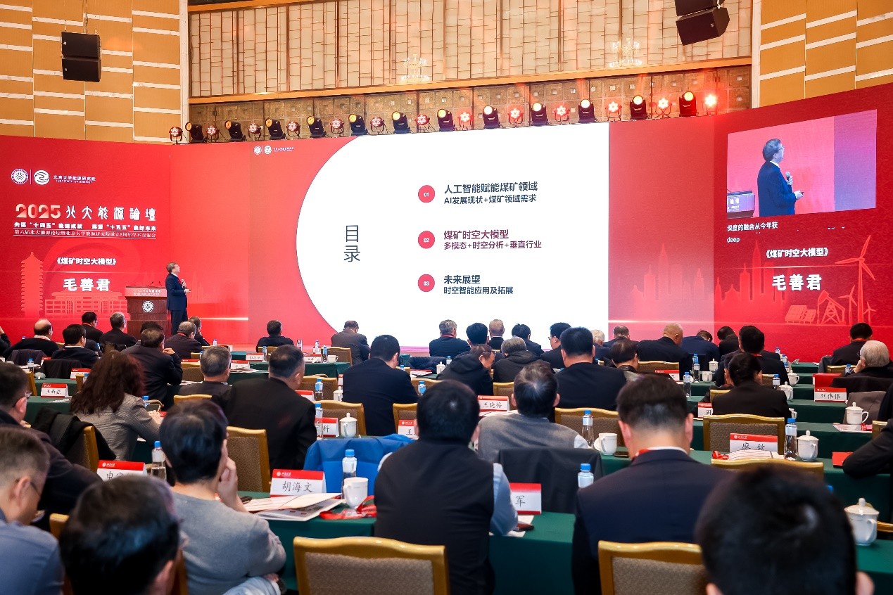 2025年10月28日,第六屆北大能源論壇暨北京大學能源研究院成立五周年學術(shù)交流會在北京大學隆重舉行。在黨的二十屆四中全會精神指引下,本屆論壇以“回顧‘十四五’能源成就,展望‘十五五’美好未來”為主題,進行了廣泛而深入的學術(shù)交流。北京大學黨委書記何光彩出席了論壇活動,中國科學院、中國工程院共27位院士及一位國外院士出席了論壇。國際能源署署長法提赫·比羅爾(Fatih Birol)、北京大學副校長樸世龍院士、中國能源研究會理事長史玉波、中國石油學會理事長焦方正、鄂爾多斯市副市長張秀玲分別致辭。中國科學院院士、北京大學能源研究院院長、北京大學鄂爾多斯能源研究院院長金之鈞作研究院五周年工作匯報。北京大學教授、北京大學能源研究院智慧能源方向負責人、北京大學鄂爾多斯能源研究院智慧礦山方向首席科學家、我公司董事長毛善君參加論壇并作《煤礦時空大模型》主旨報告。